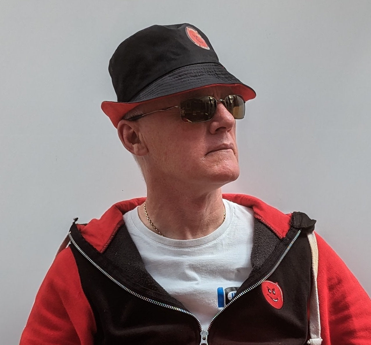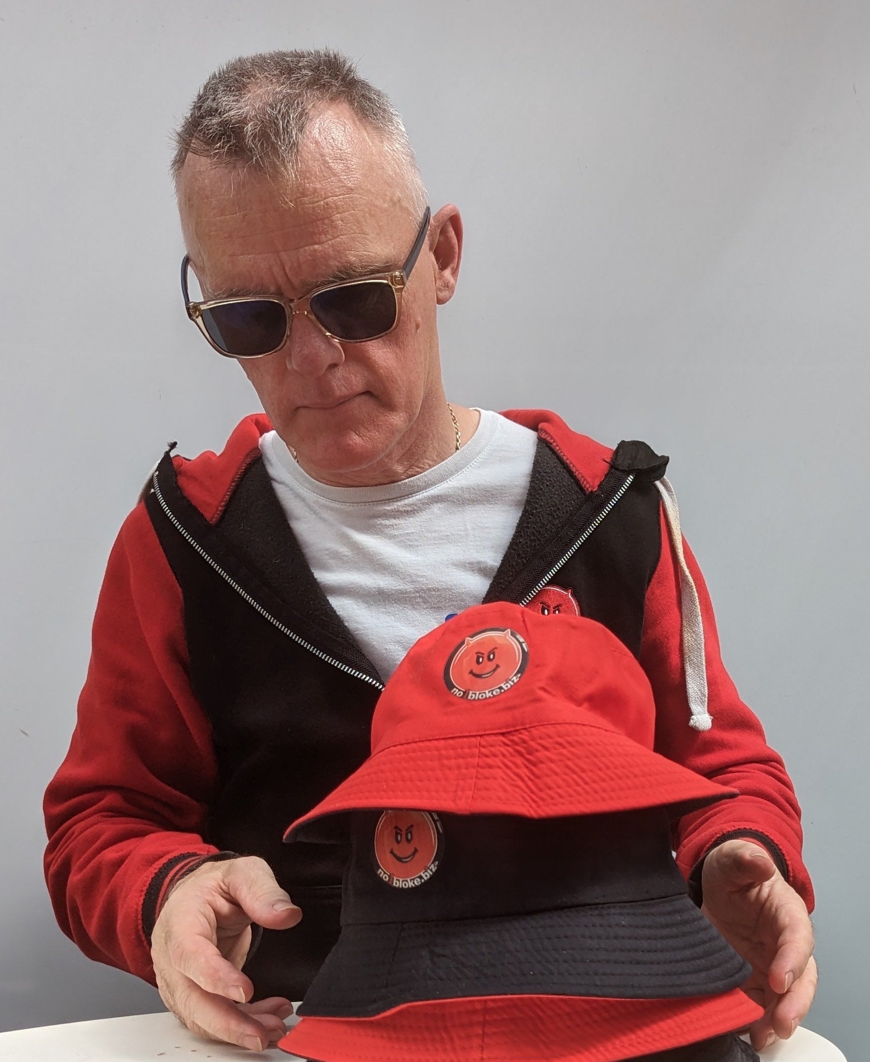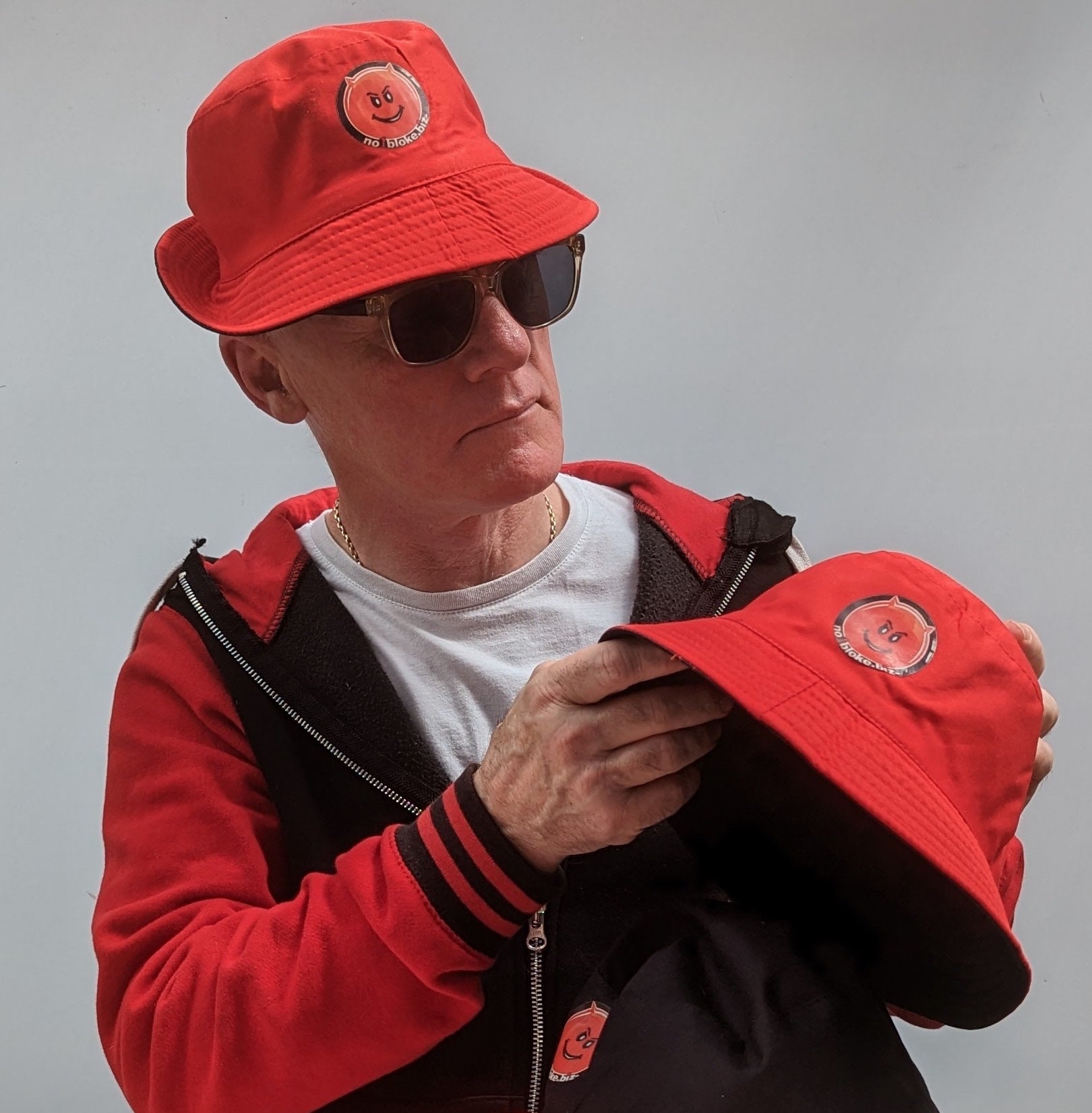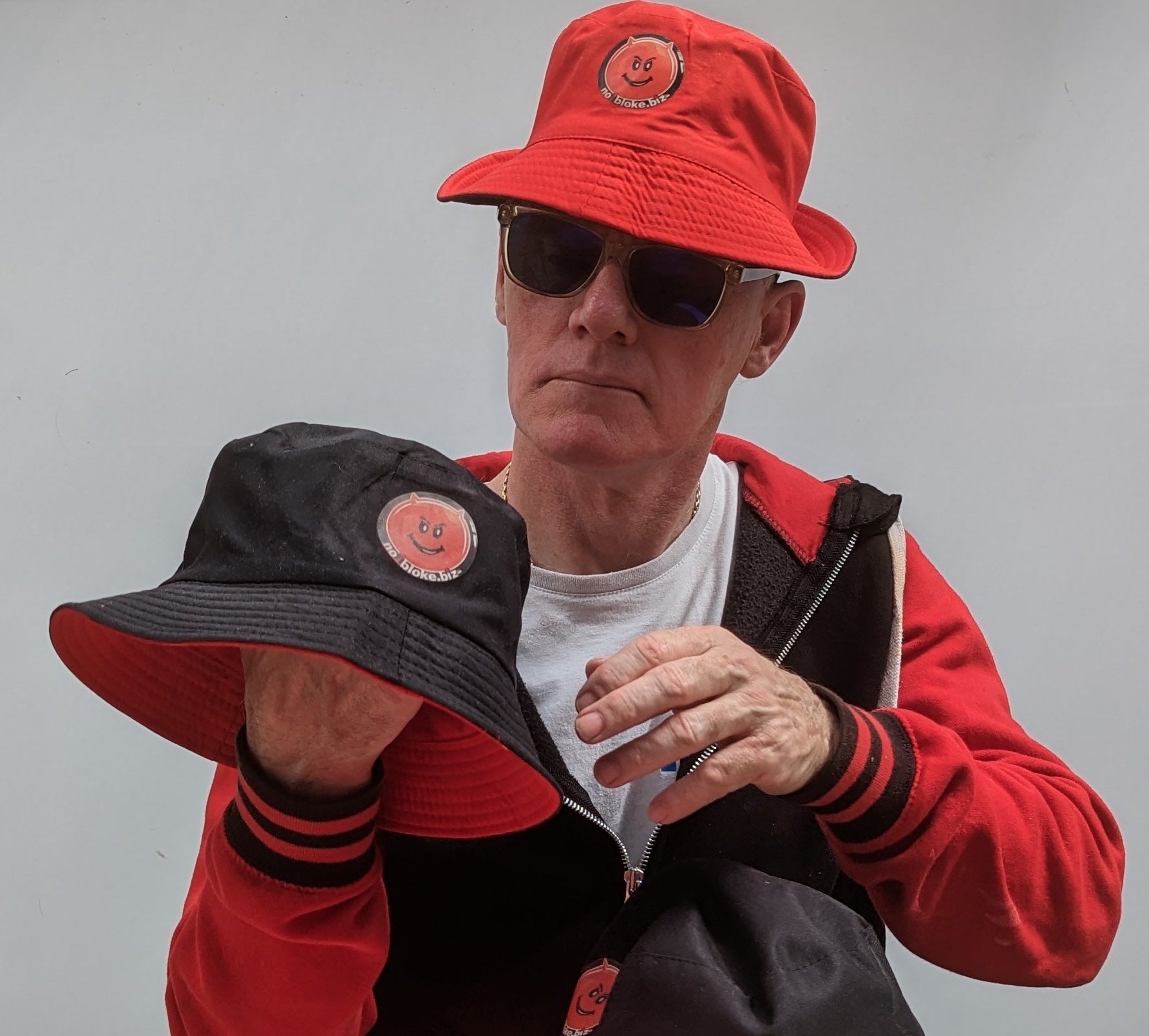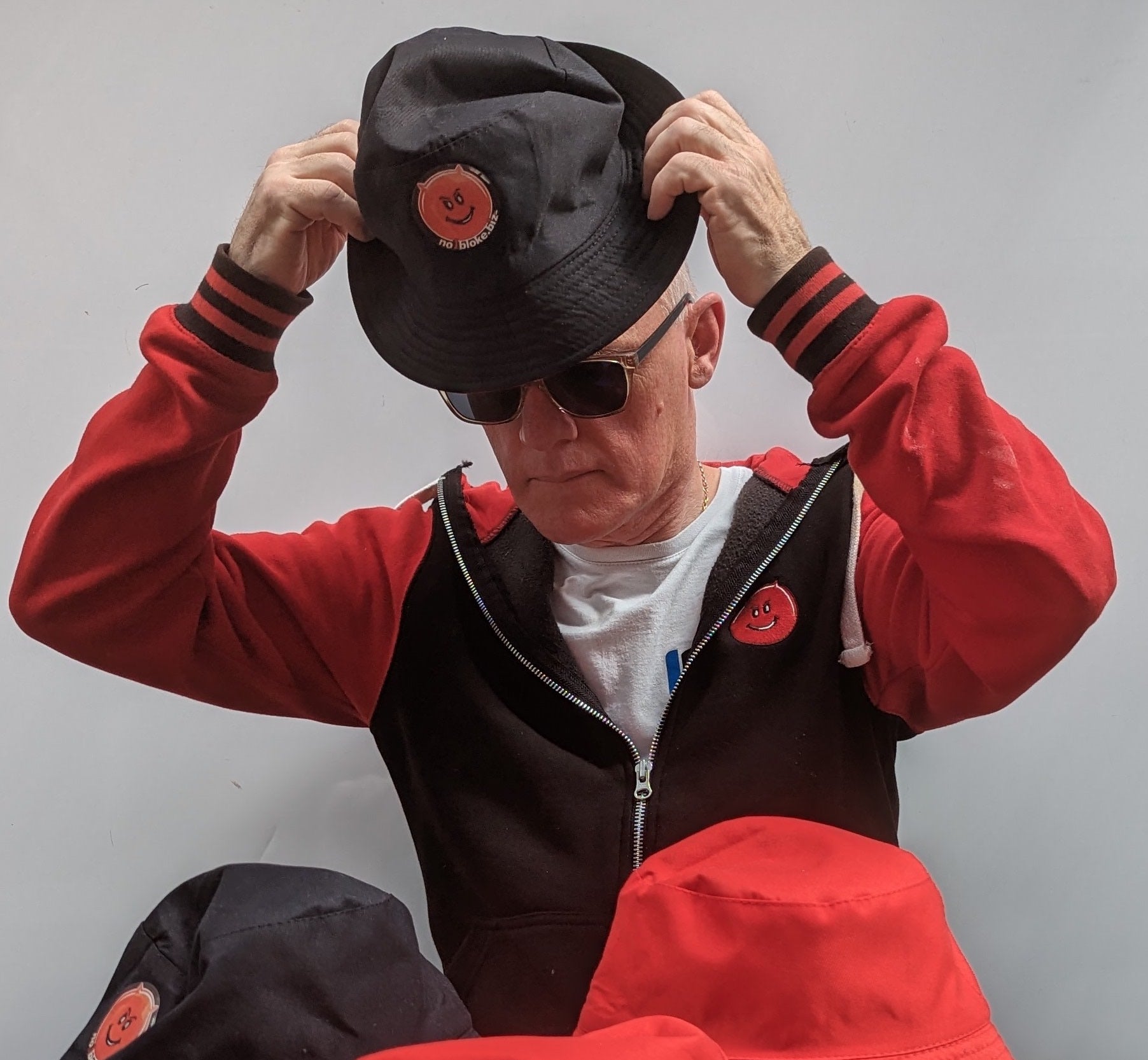 Cotton bucket hat - reversible red / black with two logos - one on each colour way.