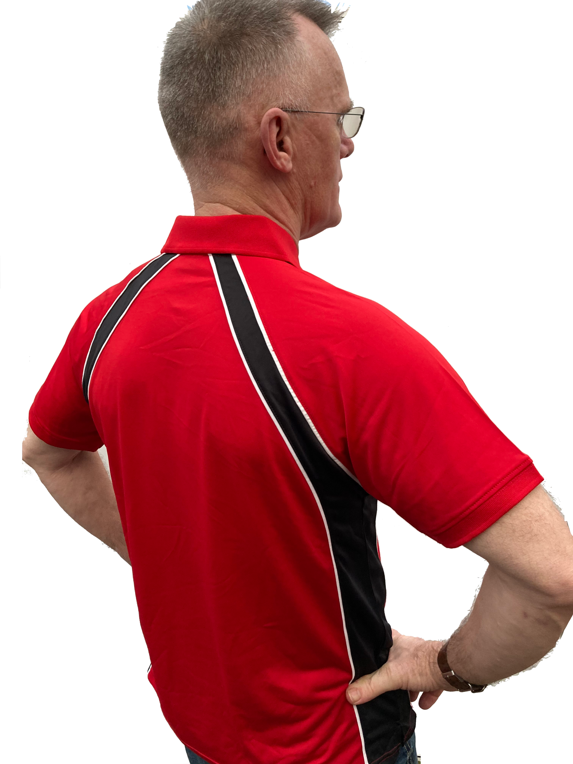 Performance Sports polo shirt - red with black and white, quality embroidered logo