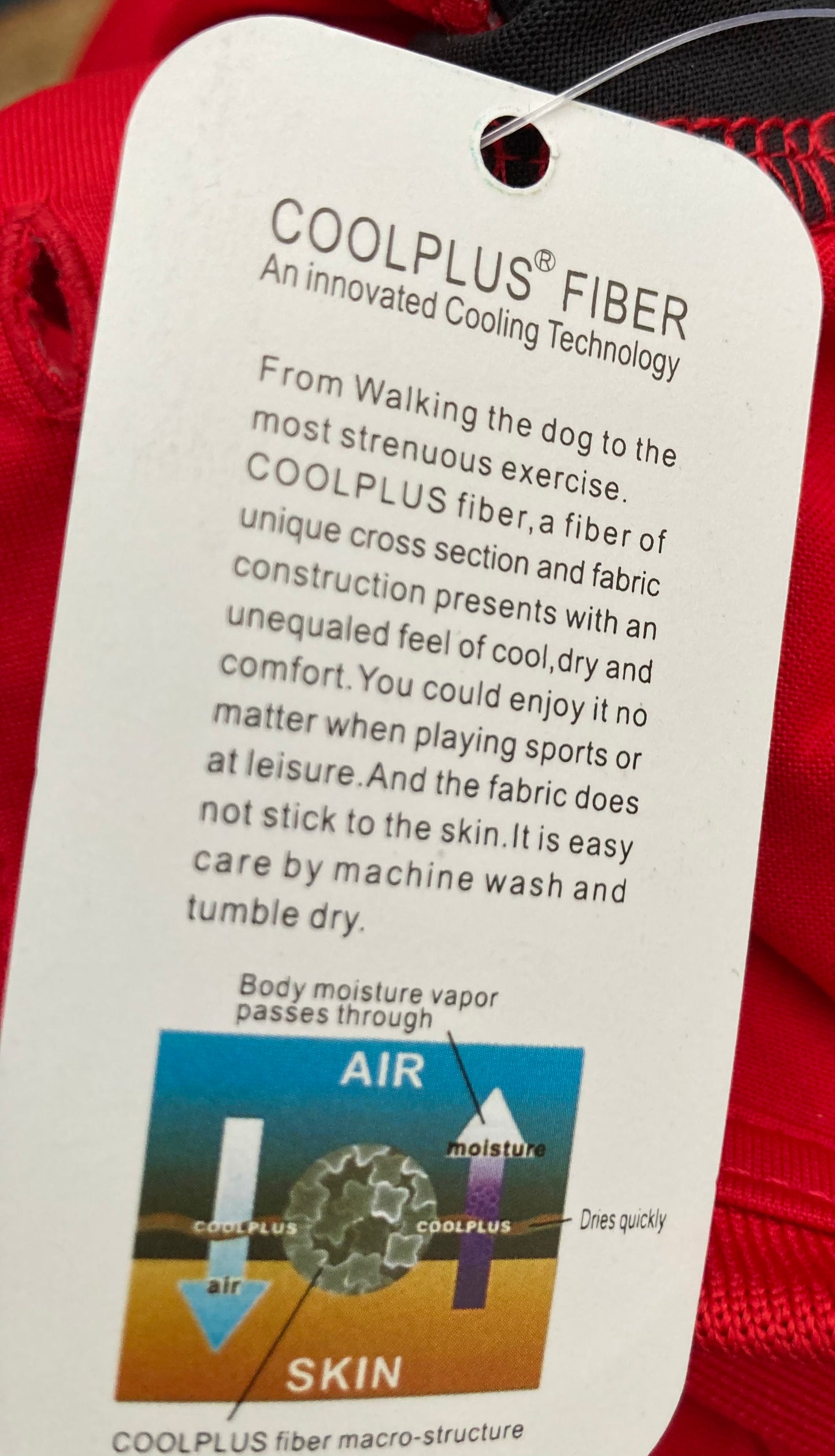 - Coolplus® modified polyester fibre draws moisture away from skin to keep you cool and dry.