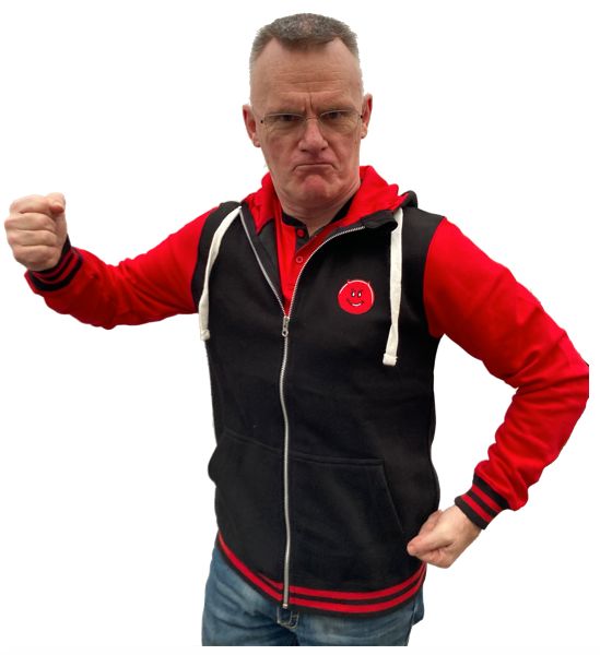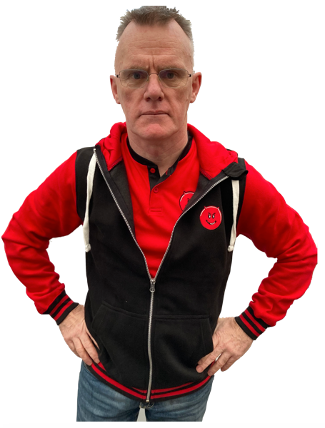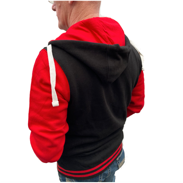 Zoodie - zip through hoodie - red and black, quality embroidered cheeky devil logo